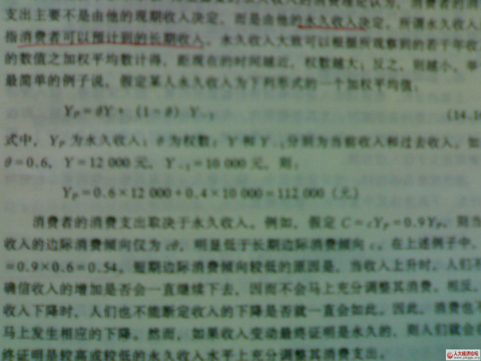 在永久收入消费理论里:假定某人永久收入为下列形式的一个加权平均值