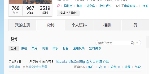 2.凡分享到微博,您的粉丝在100人以下的,视情况奖励10-40论坛币;100-300人的,奖励50论坛币(每群限奖励一次);300人以上的奖励60-100论坛币。