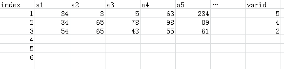 如图例示,有这么个数据,index是标示每个观测样本的,然后这些样本有a1-a5个变量。我现在需要知道的是,在每个样本中,a1-a5变量里最大值是在哪一个变量中,然后将这个变量的序号放在varid中。比如第一个观测index=1的时候,a1-a5的最大值是a5=234,所以varid=5。index=2时,最大值是98,因此varid=4。index=3时,最大值是65,因此varid=2。以此类推。