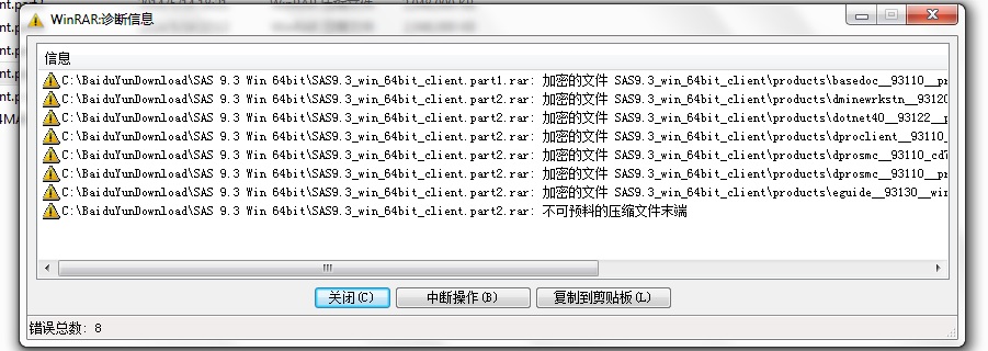 ! C:\BaiduYunDownload\SAS 9.3 Win 64bit\SAS9.3_win_64bit_client.part2.rar: 不可预料的压缩文件末端