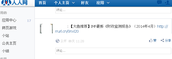 注:帮助人大经济论坛推广,复制贴子内容(带人大经济论坛网址)并发到其他论坛和网站;或点击贴子标题后的“推广有奖”,把本贴推荐到QQ群或自己的微博(最好@人大经济论坛),然后跟贴贴出链接或截图,证明已作推广的,将获得如下论坛币的奖励!