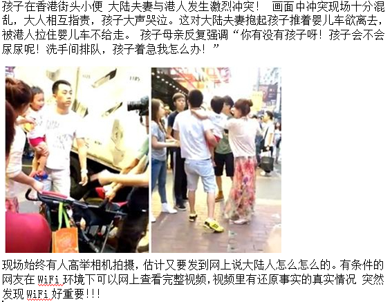 孩子在香港街头小便 大陆夫妻与港人发生激烈冲突!