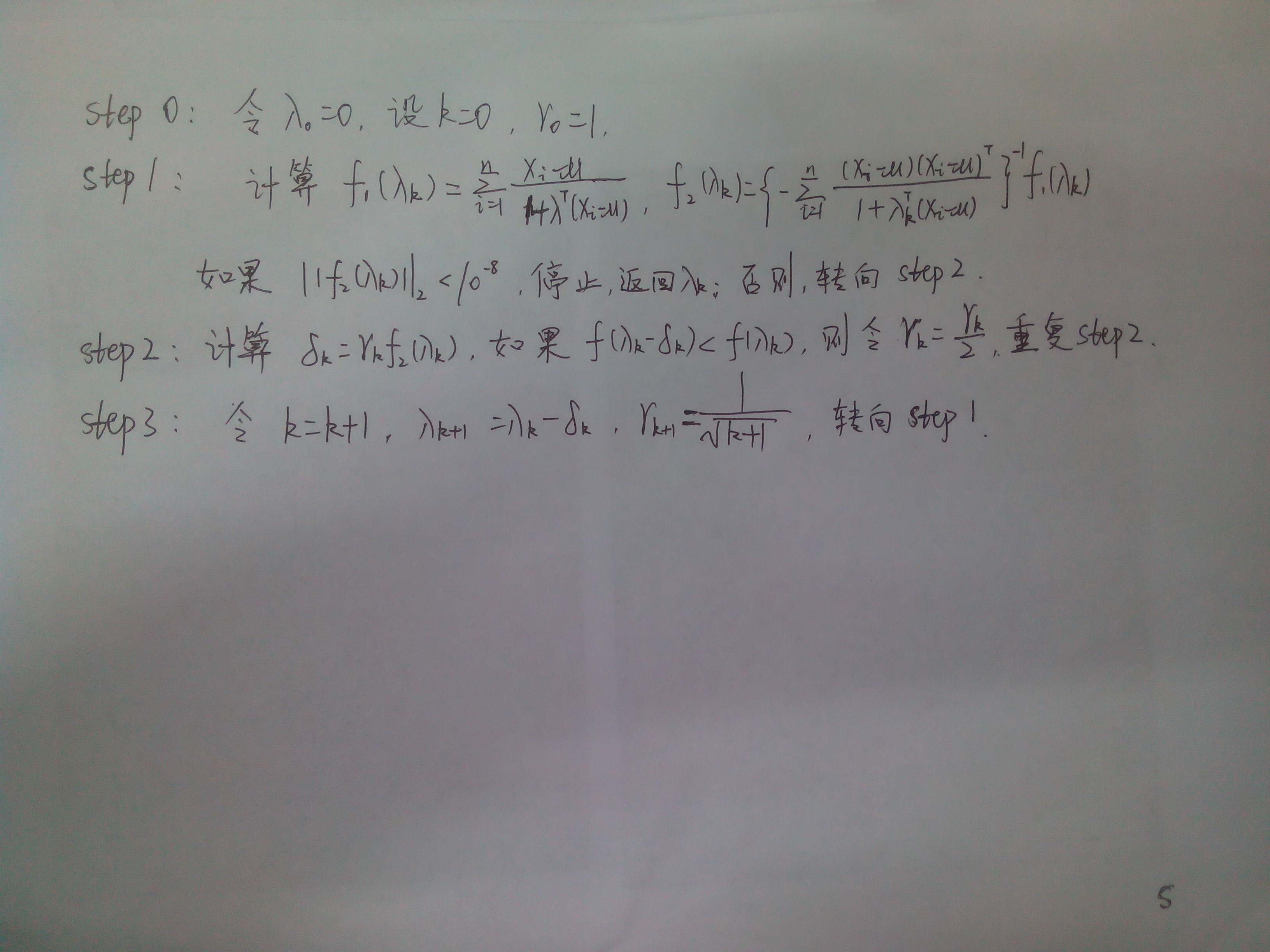 1. 上图是要编的内容,图片中的 f 为log(1+lambda^T*(x_1 -mu)) +......+ log(1+lambda^T*(x_n -mu))