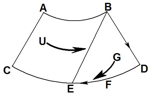 大气环流基本面貌怎样形成?它具体的眉、目、嘴、鼻,是如何造出来的?这一节要全面而概略地先说一说。在23.2中已经通过对大气环流形成和维持原理的简单分析,进一步强调了地球自转与地下热能相配合才是大气环流根本原因的新观点。但是,更重要的还在于是否能够用这种新观点来解释各种具体的大气环流问题,也即能否合乎逻辑地讲出各种具体大气环流系统的形成经过。在此,我们完全撇开一切热力(包括地热),先看看地球自转是如何具体形成目前大气环流基本面貌的。与20.3中所说的“海水底下已有了硬海底垫着”的道理一样,大气底下也有了地面和水层垫底,所以大气环流的形成过程也与海流的形成相似,再不必好像全液态球体那样由本身的离心力引导着内部体元向赤道截面方向流去,而是两个极圈的大气下垫面会因地气之间的摩擦和碰撞作用而变成两部大离心机,它们直接迫使极地上空的空气下沉到地面,然后将这些空气甩向较低纬度地带。因为 v=ωr(v—表示某地面附近静止空气绕地轴转动的绝对线速度,ω—表示地球自转角速度,r—表示某地面与地轴的距离),所以,凡是被“离心机”甩过而从高纬度跑到较低纬度(r从小变大),并且逐渐与地面保持相对静止的空气,它们绕地轴转动的绝对线速度v都加大了,也即都从地球自转得到了能量。为什么在极圈内的地面层里,一年四季都是偏东风呢?就是因为在极圈内,地球既想将空气往低纬度搬动,又要使它们保持与地面相对静止(即v必须逐渐加大),地面就必须给它们提供能量,所以便将它们拖着走,于是在北极圈内就表现为东北偏东风,在南极圈内就表现为东南偏东风了。具体如图23.3,在北半球,由于地面按着U箭头的方向随着地球自转,如果地面不供给任何能量而将空气从高纬度的B点附近往低纬度搬,则空气到了较低的CD纬度后就只能到达E点位置,成为飞跑在E点上面的正东风;如果要使被搬运的空气到达CD纬度后依然完全是地面上的静止空气,则必须从B点沿着BD方向走(正北风),最后来到D点。要完全按照后者进行,只能将空气装进一个大袋里,然后固定在一列从B点到D点的从北往正南方向开的列车上,让地面通过列车不断传送能量给空气,逐渐加大空气绕地轴转动的线速度,以使空气适应到达新的较低纬度后能与地面保持相对静止状态。在实际中,地面既想让空气一直保持与地面成为静止状态,又无法装进袋子里,就只能在绕着地轴自西向东旋转的同时,凭借着地面与空气之间的摩擦力将空气逐渐往南拖着走。由于被拖着向南走的空气无法像朝着正南方向开的列车那样快速的从地面获取了加大向东速度以保持与地面相对静止状态的能量,所以,从外观看来,空气就走成了G箭头的东北偏东风的方向了。