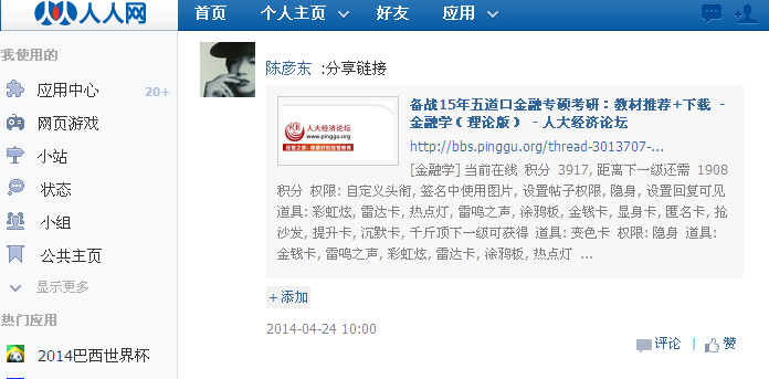 3.凡分享到其他网站(包括校内网等),帖子保留一天以上的,奖励100论坛币。