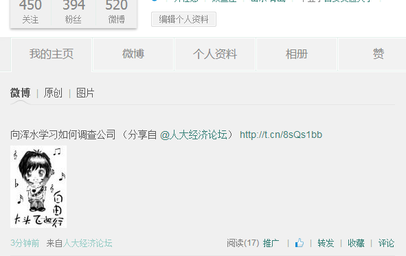 2.凡分享到微博,您的粉丝在100人以下的,视情况奖励10-40论坛币;100-300人的,奖励50论坛币(每群限奖励一次);300人以上的奖励60-100论坛币。