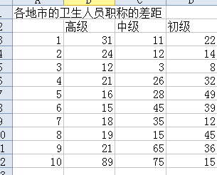 非常感谢~然后这组数据是要比较 不同地市(共10个)卫生技术人员职称(初级中级高级)的人数。
