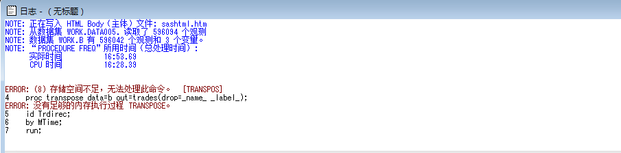 SAS在运行过程中一直提示存储空间不足,无法处理此命令