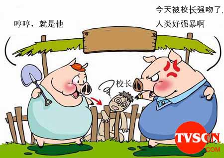 4月28日,湖北咸宁实验小学升旗仪式上,副校长洪耀明为了兑现承诺,当众亲吻猪,然后校长火了,猪也火了。