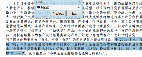 查找时注意:银行年报中对“中小企业”的标示是“小微企业”。(是不是很萌!!)