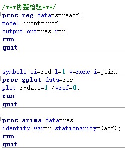 先对ironf和hrbf进行adf检验,发现两个序列一阶差分均为平稳。接下来想进行协整检验,请大虾们看看对不对。