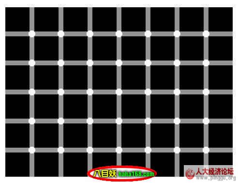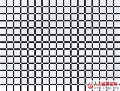 交叉部分的白点是不是显得比白色方格更白更亮? 静止的