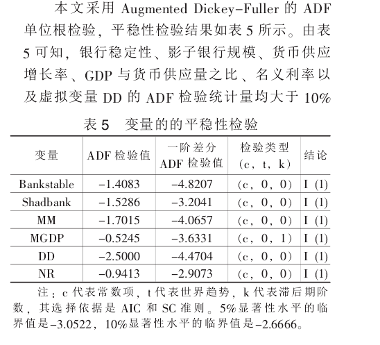 做的是影子银行对银行体系稳定性的影响实证分析,为什么我做出来的平稳性检验结果与论文里不一样,后面的模型更不用说了。影子银行规模数据shadowbank是完全按照论文里给的录入的,哪位好心人帮我分析一下,感激不尽~