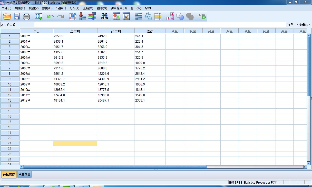 spss 描述性统计分析 中国进出口贸易额