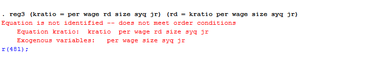 liangsky 发表于 2014-5-26 13:17 kratio方程中必须有至少一个控制变量与rd方程不同; rd方程也必须有至少一个控制变量与kratio方程不同!