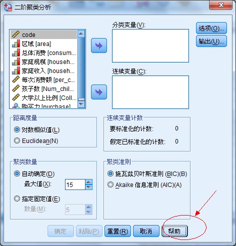 当进行数据挖掘分析时,如进入聚类分析,首先进入聚类分析的主界面,然后在对话框中点help可直接帮助主题。