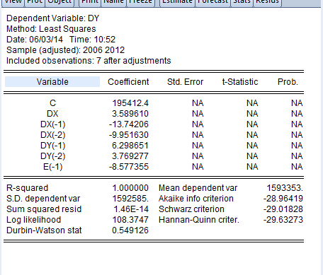 进行二阶误差模型修正 为什么EVIEWS无法显示t值什么的