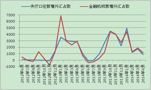 2013年央行口径外汇占款累计增加2.76万亿元,月均增加2300亿元,全年显现出中间低两头高的走势。