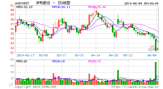 6月3日,端午小长假后的第一个交易日,伊利股份(31.79, 0.47, 1.50%)(600887.SH)正遭遇其近三年以来最大一次盘面危机。