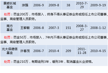 数据显示,在涉案截止当月离职的有交银施罗德-李旭利、交银施罗德-郑拓、光大保德信-许春茂三位;在涉案截止次月离职的有博时基金-马乐、景顺长城基金-涂强、长城基金-刘海、长城基金-韩刚四位。
