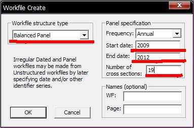 1.在Eviews主界面下 点击File-New-WorkFile 然后选择/填写如下信息(红色标记的地方)