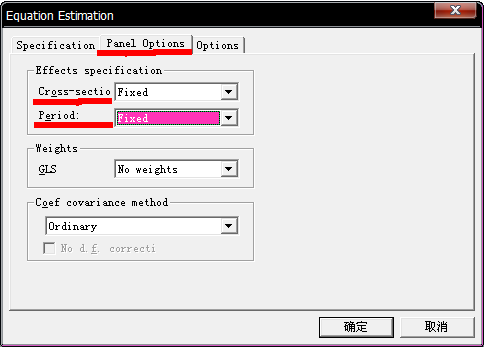 Cross-sectio为个体效应选项、Period为时间效应选项