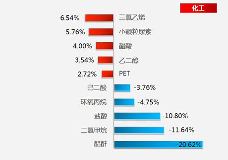 本周尿素市场由于减产及农需支撑价格持续大幅上涨,地区市场整体走货情况较好,此轮国内用肥行情过后,国际尿素市场标购仍是重点,后期需谨慎对待尿素整体走势。近期,乙二醇市场持续坚挺,随着PTA价格的上涨,聚酯工厂压力增加,即使有回调走势,但逢低补货意向不少,因此下跌较难,预计乙二醇整体维持震荡偏强走势。国内二氯甲烷价格持续走低,前期厂家为消化库存,下调价格需求放量,但下游制冷剂市场盘稳为主,恐跌情绪浓厚,多持币观望,预计二氯甲烷将横盘整理为主,不排除继续下行的可能。
