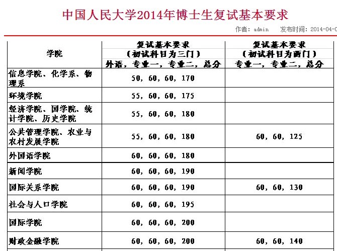 如上图,此表是复试基本要求,是否意味着即使达到这些分数限制也不一定可以进入复试呢?如果确实如此,人大博士复试时候的录取比例又是1比多少呢?