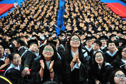 今天,我们在这里隆重举行2014届本科生毕业典礼,共同庆祝你们人生历程中神圣辉煌的时刻。大家通过自己的努力,圆满完成了大学学业。在此,我谨代表华中科技大学全体师生员工,向你们表示最热烈的祝贺!