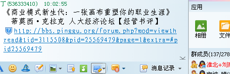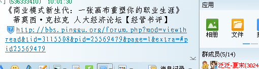分享帖子的 ‘标题+链接’+人大经济论坛【经管书评】 到QQ群或者微博,将截图(含QQ群成员数字/微博粉丝数) 回复在下面,会获赠论坛币: