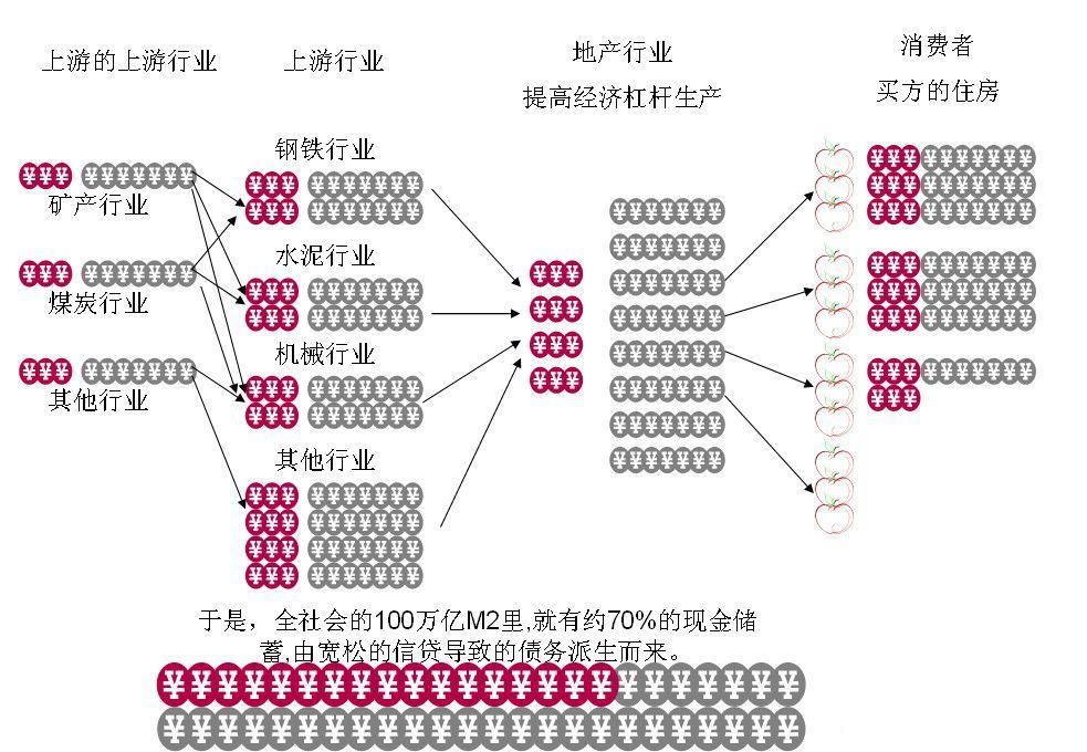 根本性的原因,是消费者信贷,房贷,扭曲提升了消费者的购买能力,导致了商品房的销量大增,导致了住房市场的赢利较高,导致了住房市场的繁荣,同时又拉动了上百个行业的发展,成本上升,地价上升,各个过程中的灰色收入,最后都必然都是消费者买单,有消费者信贷的资金买单,是这个过程不但循环,才催高了房价,导致很多人没有消费能力买房,必然借助于房贷,甚至啃老来买房.