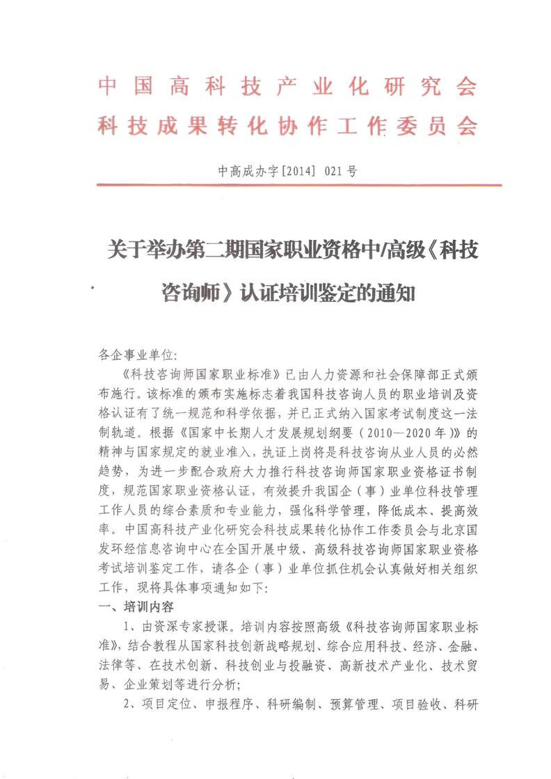 附件1:国家职业资格中级/高级科技咨询师培训鉴定报名表
