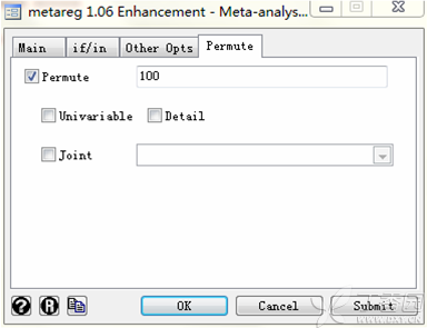3. Within-study Varibility一栏中有两个选项,一个是Std.Error,另外一个是Variance。这一栏要求选择对回归系数进行加权的依据,一般选择Std. Error。还有一个选项是Variablename,要求指出每个研究内包含Std. Error 的变量,这儿应该是sesmd(如果是二分类变量,则是selogrr或者selogor;