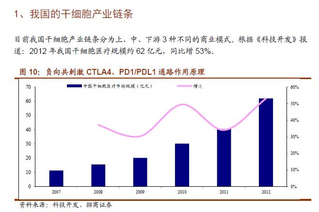 肿瘤免疫治疗主要包括三大类:免疫检验点单抗疗法、过继细胞免疫疗法(ACT)和肿瘤疫苗。免疫检验点单抗疗法研究焦点在:调节T 细胞不被过度刺激的负向共刺激CTLA4、PD1 和PDL1 通路。2011年,FDA 批准BMS的CTLA-4 单抗ipilimumab)用于治疗恶性黑色素瘤,2013 年销售收入9.6亿美元,2014Q1收入4.06 亿美元。2014年6月,施贵宝宣布其PD-1 抑制剂nivolumab在一个黑色素瘤的三期临床因明显改进总