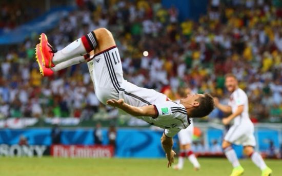 德国队就遭遇了困境,踟蹰不前时,勒夫想到的是克洛泽,队伍唯一的前锋,是的,替补上场的克洛泽首次触球就扳平比分。空翻再次出现,不过,那也是克氏空翻最后一次出现在世界杯的赛场上了。