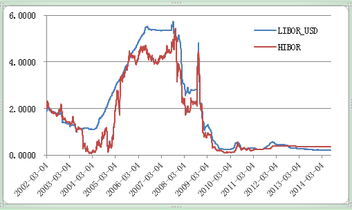 3个月Hibor与3个月美元libor走势图