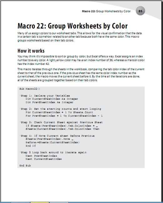 Outlines a problem that needs to be solvedand provides the actual Excel macro, as well as the downloadable code, to solvethe problem