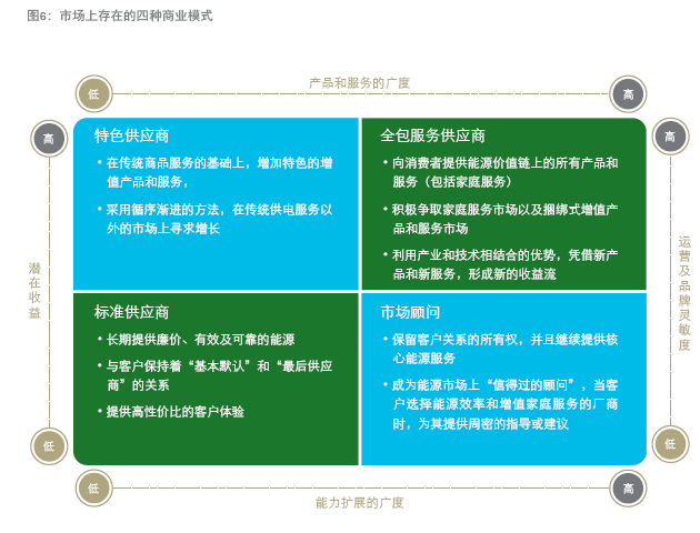 报告还是关注在战略及趋势层面,核心在于对于这种趋势更好的把握及应用,在消费者偏好转变和市场颠覆力量加速涌现的驱动下,一个新的、更具动态化的能源市场正在形成。当前的诸多变化意味着,供应商需要明确并创造未来所需的各项竞争力,不遗余力地精简自身结构,打造出更加敏捷、更具变革能力的组织。