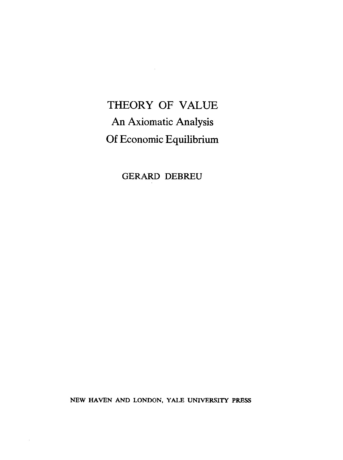 价值理论及数理经济学的20篇论文-德布鲁-首都经贸版+耶鲁英文版