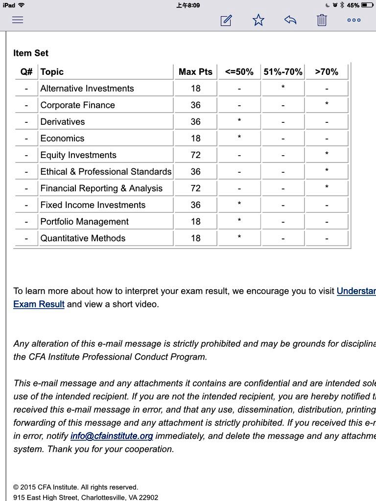 同意这个逻辑。花太多的时间努力考个全A只能证明你确实时间投入在CFA里比较多,并不说明太多问题。人生的时间怎么分配,还是要自己才清楚什么是最好的。