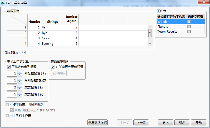 5. 分析自动化与扩展 分析自动化与扩展的功能主要是指用编程的方式来自动调用JMP进行数据的整理和分析工作,并通过提高JMP与其他数据分析软件的兼容性来快速提高JMP的适应能力和分析能力。它是专门为JMP高级用户准备的。JMP11在这方面的亮点也是层出不穷,包括:构建界面更友好的JSL(JMP脚本语言)编程环境、优化应用程序的实用功能、支持直接读取Teradata数据库、完善Excel导入向导、与Matlab无缝集成和导入海量外部数据前可事先抽样等。 我们从中精选两项内容来说明一下:完善Excel导入向导和与Matlab无缝集成。 Excel是我们接触频率最高的数据分析软件。常常看到这样的情形:需要用JMP分析的数据分布在多个Excel工作簿里,其中又有不同的嵌套层次和分组的行或列,因此在开始分析前往往需要进行大量处理。现在,凭借完善后的JMP11 Excel导入向导,数据导入的难题迎刃而解,无需进行长时间的清理和格式修改,只需简单几步,即可获得JMP标准格式的分析表格。如果文件发生变更或更新,还可自动生成JSL用于刷新数据。