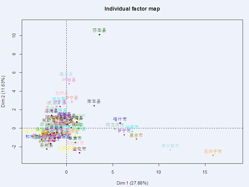用R软件做了一个多重因子分析,然后画出来几张图,可是由于观测值比较多,图片内容都挤到了一起,不知道该怎么查看细节???求各位指点迷津