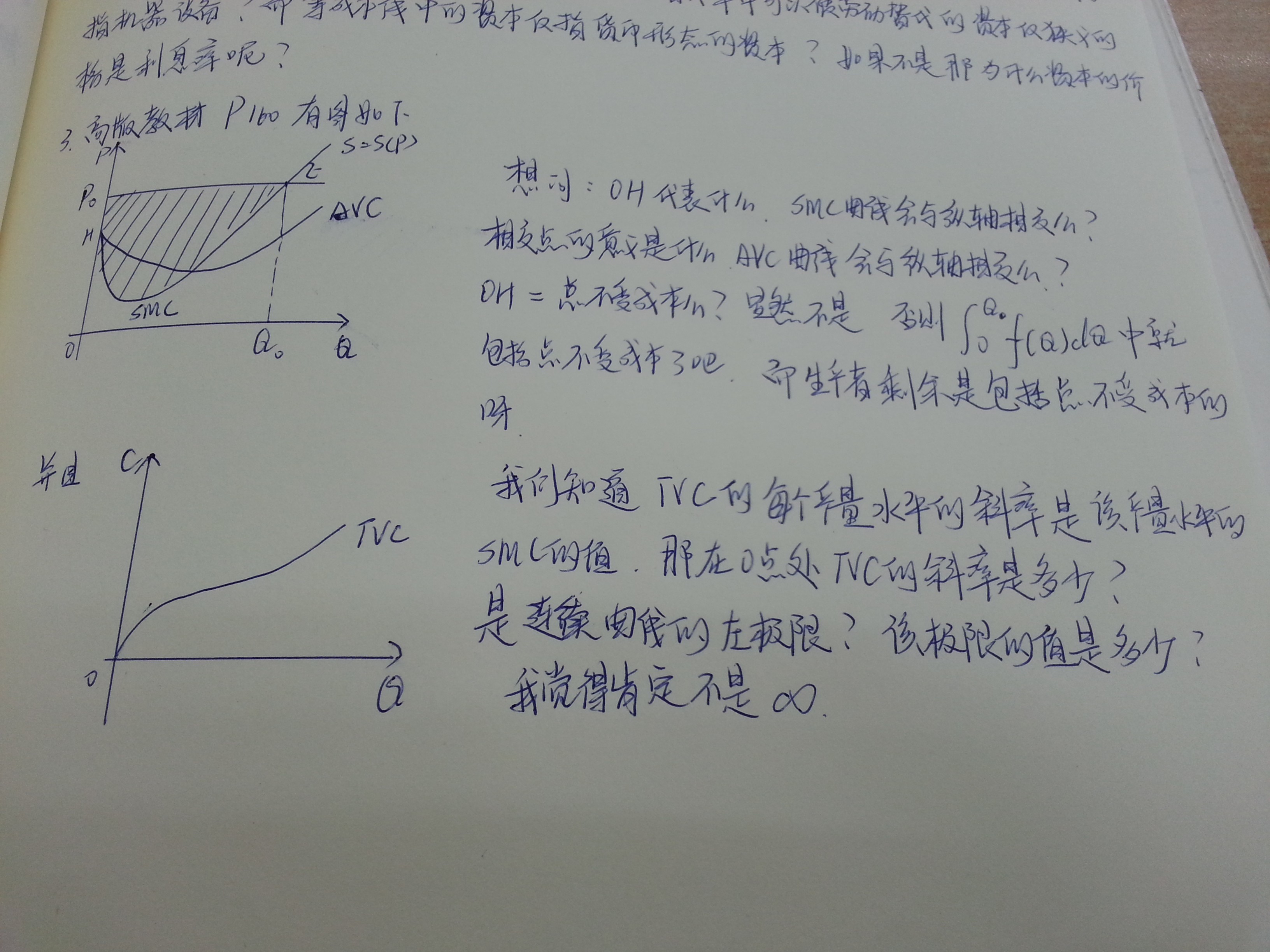 943689135 发表于 2014-8-2 20:54 当产量为0时,再增加一个单位的产量的边际成本正好等于可变成本,oh表示这个值,且不为0