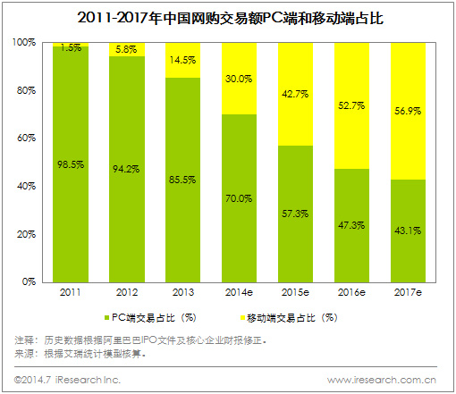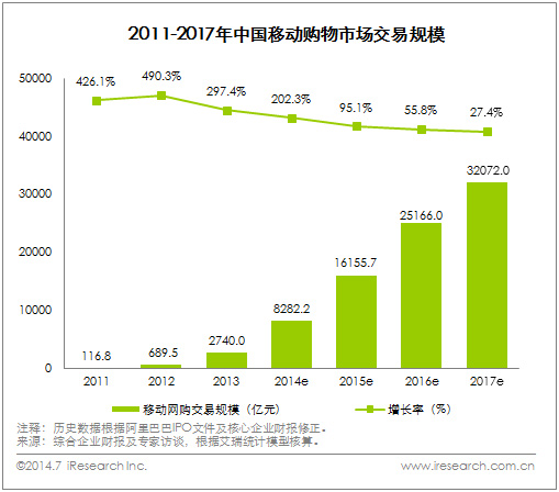 2014年中国移动购物市场交易规模将超8000亿元,移动端交易占比达30%
