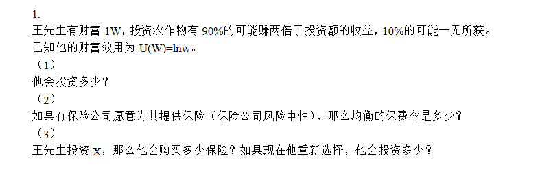 期望效用是:E=0.9*Ln(1+x)+0.1*Ln(1-x)