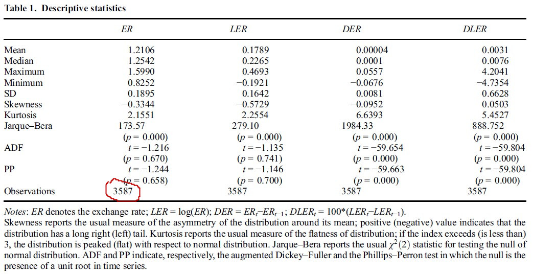 本人eviews 初学者。我看到一篇文章题目是关于Seasonal processes in the Euro–US Dollar daily exchange rate. 有些相关数据和我所用的文章中的数据对应不上,就是不知道作者是怎么做出来的. 文章选取的是1999年1月4日-2012年12月31日的数据(数据源是用的www.ecb.int/stats/exchange,(作者用的是eviews 做的数据)一共有3587个观察对象