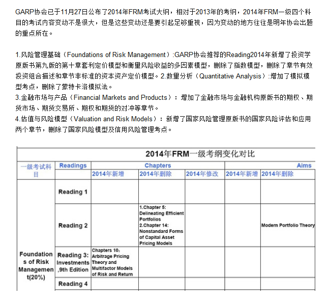 求2014FRM一级考纲变化对比