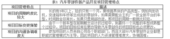 由于国内的大部分汽车零部件行业都是中小型企业,技术含量比较薄弱,所以项目管理应用较少。只有在发动机、变速箱和车桥等总成类零部件企业和合资的汽车零部件企业运用到项目管理,且其中大部分仅在新产品开发项目上运用项目管理。