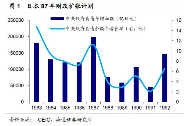 由于出口压力增大,86年到87年日本央行迫于内外压力连续5次降息应对日元升值带来的负面影响。87年“黑色星期一”后,各国经济增长势头良好,先后提高利率,而日本继续维持超低水平贴现率,直到89年中。