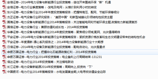 2014各券商年度投资策略报告汇总——电力行业篇(共15篇报告,详见下方图片显示 )
